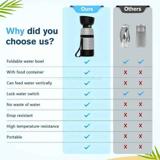 All-in-One Portable Dog Water Bottle with Food Container (650ml)